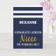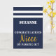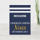 This nautical british navy passing out card is a great way to congratulate your niece on their success and all the hard training they have experienced so far in their military career. Navy blue uniform scarf design with white stripes and congratulations niece on passing out with the name of the naval graduate included.
