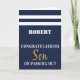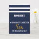 This nautical british navy passing out card is a great way to congratulate your son on their success and all the hard training they have experienced so far in their military career. Navy blue uniform scarf design with white stripes and congratulations son on passing out with the name of the naval graduate included.