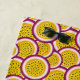 Beach towel with illustration of passion fruit slices.
