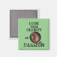 Radiant red flower with text "Cook With Plenty Of Passion" on dark green background