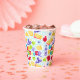 Featuring a cheerful “Happy Passover” greeting, this vibrant cup is decorated with meaningful holiday symbols — traditional matzos, Haggadah, bottles of wine, elegant wine glasses, and playful doodles that reflect the joy and spirit of the celebration. The lively design brings warmth and color to every place setting.