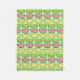 Cosy fleece blanket features an original marker illustration of a row of sugary fruit slice candies.
