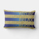 Enjoy this Passover Lumbar Pillow for your Seder this year and for many years to come! "Recline, Relax, Rejoice" is printed on both sides of this Gold and Blue, striped pattern. Made from a high-quality Simplex heavyweight stretch fabric, these 100% polyester pillows are soft and wrinkle-free.