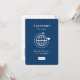 Passport to love with globe outline and aeroplane on the front; passport style layout on the back with subtle world map behind; photo too