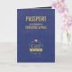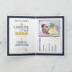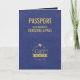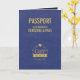 This passport wedding invitation, shown in warm gold and blue colours, resembles a passport and it is perfect for a destination wedding.