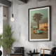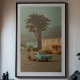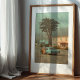 This evocative, painterly photograph captures a quiet moment frozen in time. Under a hazy, atmospheric sky, a woman in classic vintage attire gets into her beautiful blue sedan, parked in a sleepy town of pastel-coloured houses. The scene is rich with narrative ambiguity and cinematic charm, leaving you to wonder if this is the beginning of a journey or the end. With its muted, nostalgic colour palette and film-like quality, this artwork is a perfect piece for lovers of vintage Americana, classic cars, and art that tells a compelling story, adding a touch of retro elegance to any space.