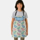 This personalised, playful and nostalgic boys' apron features a pattern of cute, pixelated dinosaur silhouettes in soft, pastel '90s arcade colours like mint green, baby blue, pastel pink, and lavender hues, creating a fun yet gentle aesthetic.