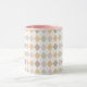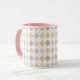 A cosy, classic mug featuring a soft pastel argyle pattern in delicate shades of pink, peach, and khaki green.
