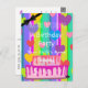 Girl's Birthday invitation - HAMbyWhiteglove aka HAMbyWG design, has a gorgeous stripe in a neon pastel with complimentary hearts of different sizes bubbling out, a violet frame and a pretty black bow tie! Our HAMbWG Art Deco logo is in the bottom right. Matching paper plates, cups and napkins, etc., available separately. 203-302-0337 for Assistance.