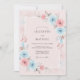 This romantic design features a soft watercolor palette of blush pink and powder blue. Delicate roses and lush greenery create a whimsical atmosphere perfect for a seasonal event. The airy aesthetic captures a dreamlike quality through painterly floral arrangements and a serene pastel background.