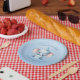 Serve up smiles with paper plates featuring a cute pastel blue elephant and birthday cake on a blue background.