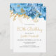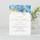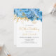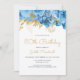 This elegant 80th birthday invitation features a floral top border of pastel blue flowers and gold faux foil leaves. . The words "80th Birthday" and the name of the guest of honour appear in gold-coloured casual handwriting script, with the rest of the customisable text in charcoal grey sans serif font. The floral design is repeated on the reverse side. Easily edit the text for any age birthday.