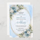 Pastel Blue Floral Gold Glitter Wedding Invitation
