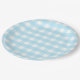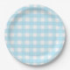 This pretty, pastel blue gingham pattern paper plate adds a cute, country accent to a summer party or perfect for a boy baby shower. You can reduce or enlarge the pattern to your preference. Spring and summer is the perfect time to use this classic chequered design. Personalise with any text if desired.