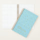 Fun and trendy personalised bullet journal features spun sugar pastel blue (a 2022 Pantone colour pick) with gold confetti pattern overlay and centre personalised text.