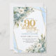 Pastel blue gold shimmer floral 90th birthday invitation