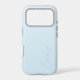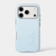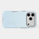 A trendy personalized pastel light blue iPhone case, with a soft gradient design and modern calligraphy script font.