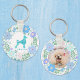 Pastel Blue Poodle Custom Floral Name & Photo Key Ring