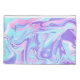 An abstract digital paint pour artwork featuring bright, pastel shades of light cyan blue, purple, and pink. The colours & textures are mixed together to create this psychedelic holo marble look.