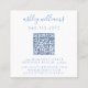 Pastel Blue QR Code Monogram Floral Crest Square Business Card