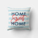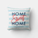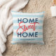 Chic Home Sweet Home Pillow featuring the words "Home Sweet Home" in blue sans serif and orange trendy script all against a pastel blue and white stripes background. Check out other home decor items here https://www.zazzle.com/rosewoodandcitrus/gifts?cg=196222223301298047&rf=238364477188679314