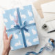 Pastel Blue With White Bunny Pattern Cute Easter Wrapping Paper