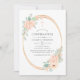 Blush pink polygonal confirmation party invitation with gold glitter geometric frame designed to be quickly and easily customised to your event specifics.