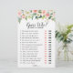 Elegant Blush pink / peach spring floral botanical bridal shower game card "Guess who?" featuring a bouquet of soft pastel watercolor roses, peonies and hydrangeas in shades of blush pink, peach and cream with lush green botanical leaves and eucalyptus leaves. A modern design choice that is perfect for spring and summer sage blush pink themed weddings. Please find more matching designs and variations from my "blissweddingpaperie" store. And feel free to contact me for further customisation or matching items.