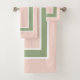 Pastel Blush Pink Sage Green Block Pattern Bath Towel Set