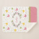 Add a beautiful touch of springtime to your home bedroom decor with this butterfly floral sherpa blanket. Blanket has a pattern of pastel pink, yellow, and green butterflies and polka dots. In the centre there's a place for your custom text, such as a first name, in the middle of a wreath of flowers.