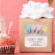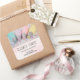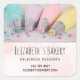 Business stickers with a pretty pastel coloured photograph. Featuring cake decorating items in pastel blue, pink, peach and yellow. Set upon a wood table with little colourful beads. Your personalised text written over a pink watercolor background.