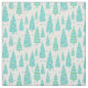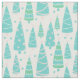 A winter pattern of illustrated pastel blue and green Christmas trees arranged into a never ending forest of festive trees. They are decorated with garland and stars.