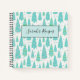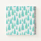 A winter pattern of illustrated pastel blue and green Christmas trees arranged into a never ending forest of festive trees. They are decorated with garland and stars.