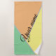 Oh my goodness, let me tell you about this incredible beach towel I just discovered! It is the epitome of summer vibes and style. Picture this: a stunning pastel colour block design in shades of yellow, orange, and green that instantly transports you to a tropical paradise. But that's not all; it also features a playful pattern that adds an extra dose of fun and uniqueness. And here's the best part - it can be customised with your own name, making it truly one-of-a-kind! The script calligraphy used for personalisation is simply exquisite, adding a touch of elegance to this already gorgeous beach essential. Whether you're lounging by the pool or frolicking along the sandy shores, this custom name beach towel will surely make heads turn and envy swirl. Get ready to bask in compliments as you strut your stuff with this fabulous must-have accessory!