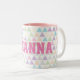 Pastel Colour Triangles with pink Custom Name Two-Tone Coffee Mug