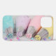 A phone case with a pretty pastel coloured photograph. Featuring cake decorating items in pastel blue, pink, peach and yellow. Set upon a wood table with little colourful beads.