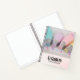 A personalised spiral notebook with a pretty pastel coloured photograph. Featuring cake decorating items in pastel blue, pink, peach and yellow. Set upon a wood table with little colourful beads.