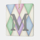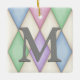 This elegant custom ornament has a large monogram on a Harlequin pattern of pink, blue, green, purple, and cream diamonds. Write your personalised message on the back over a distressed parchment background.