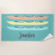Pastel Coloured Kayaks Personalised Teal Blue Beach Towel