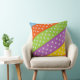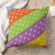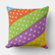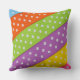 Throw pillow with pastel colours polka dot ribbon background. Colours of blue, orange, green, purple, yellow, and pink.
