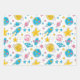 Pastel colours space planets on white background wrapping paper sheet