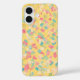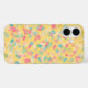 This phone case features a fun and vibrant design with a bright yellow background scattered with small, pastel-coloured paper shards and tiny ribbons. The mix of pink, light blue, and cream-coloured fragments creates a whimsical collage art effect that is both playful and unique.