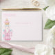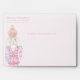 This envelope has a pastel color palette and features a nutcracker with a cupcake hat on the front with text that says "kindly deliver to." You can add your name and return address. The inside has a coordinating pattern.