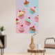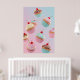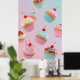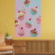 This adorable artwork features a delightful assortment of pastel-colored cupcakes arranged against a soft pink background. Each cupcake is decorated with charming details—fluffy frosting, sprinkles, cherries, and playful color combinations—creating a sweet and whimsical pattern perfect for dessert lovers of all ages. The gentle pastel palette makes the design visually pleasing and suitable for both children’s and adults’ décor.