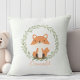 Our beautiful soft pillow with a pastel background is adorned with a watercolor green floral frame and cute little fox. Customise the front with baby's first name. It is the perfect for a nursery. View our full baby collection in our Zazzle store!