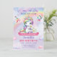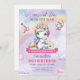 Pastel Cute unicorn with flowers third Birthday Invitation