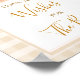 My thoughts on this product was excellent. Well printed in a gloss finishing and just the size l ordered. It arrived in good condition and am overall satisfied with the product. The printing turned out great. I was quite surprised with the finishing touch to the poster. The semi gloss was just right and a perfect size to display at the wedding.