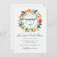 Pastel Dahlia Wildflowers Wreath Engagement Party Invitation