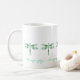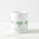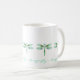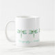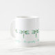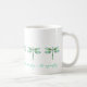 The perfect mug for your coffee or tea on summer mornings. A row of outline dragonflies in pastel hues of blue, aqua, and green ring this cup, along with the word, Dragonfly in script. This is a customisable mug so you can change the text as well as the colour of the text and border.
