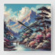 Pastel Drawing Ancient Asian Landscape Mountain Square Wall Clock